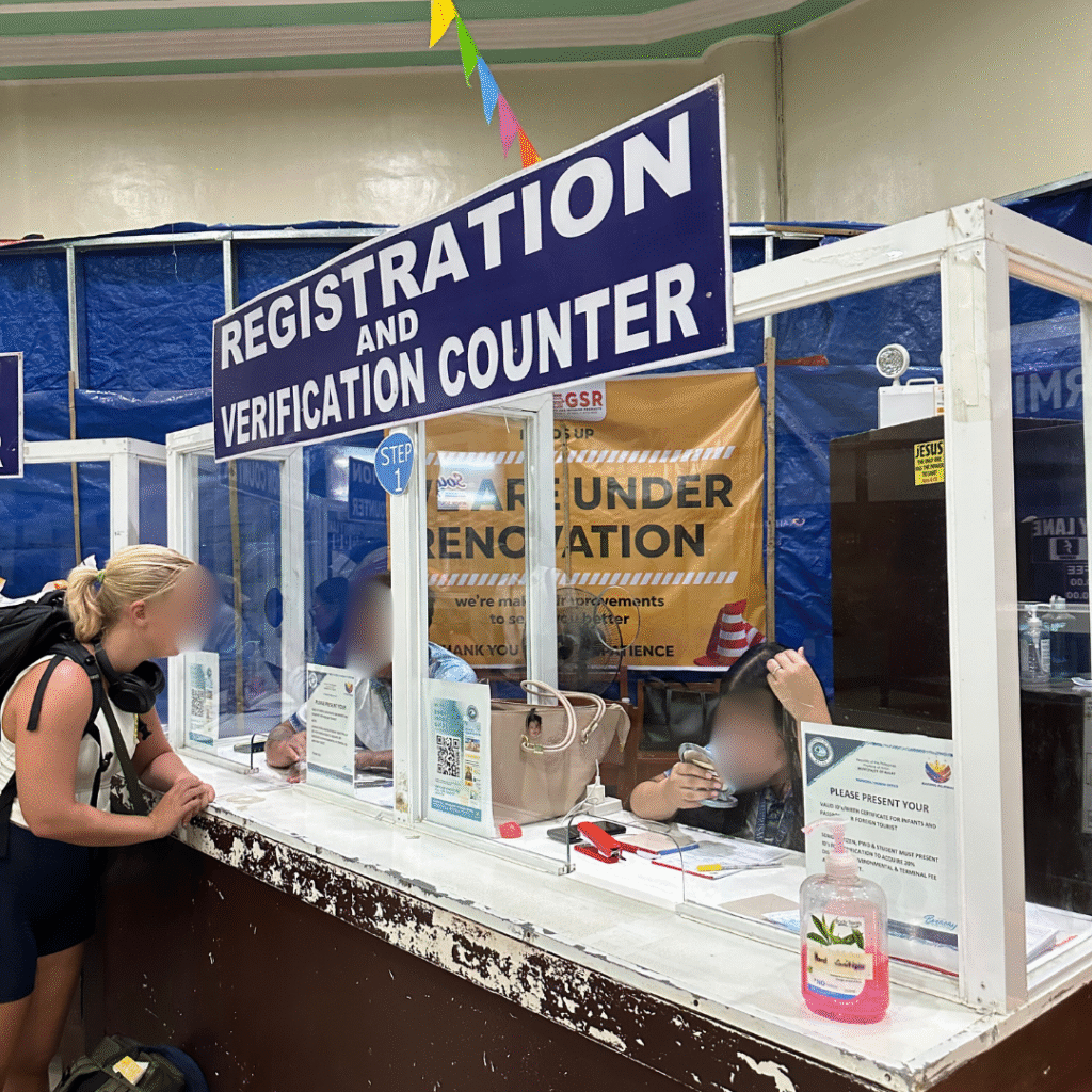 帰りは行きと反対の動きをします。ホテルからトライシクルでフェリーターミナルへ向かい、空港へ向かいます。トライシクルは75ペソ。ターミナルでは、ターミナル利用料と船賃をそれぞれ支払います。